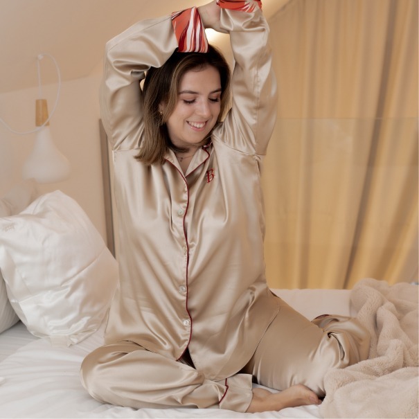 O contraste suave entre o brilho do cetim e a suavidade do tecido proporciona uma experiência única, perfeita para noites relaxantes em casa.