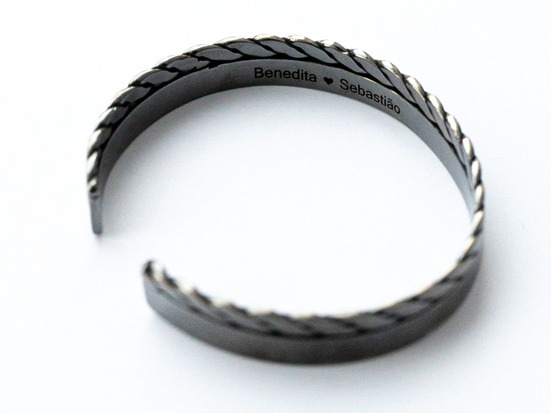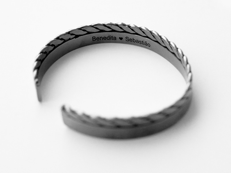 Pulseira em prata 925 oxidada e gravação por dentro, até 40 caracteres.