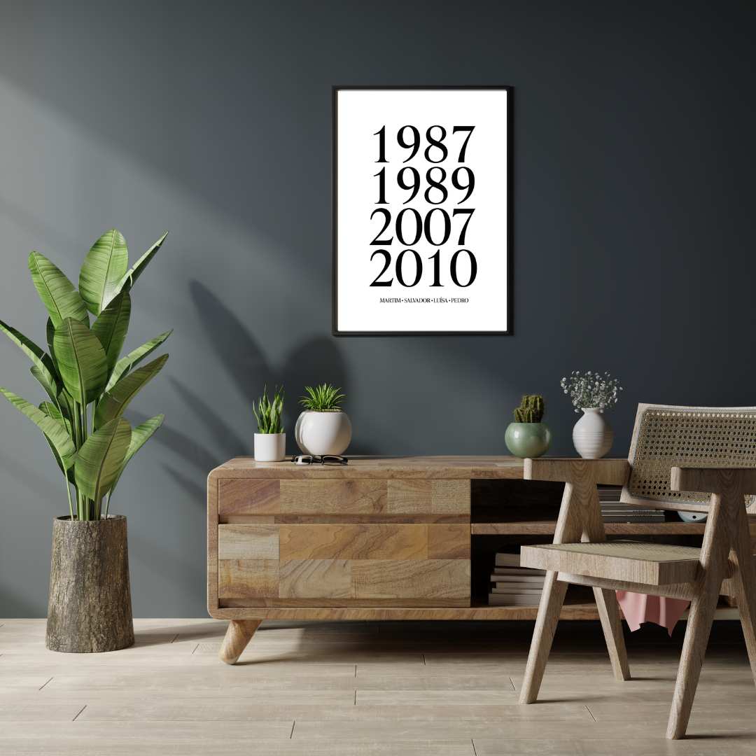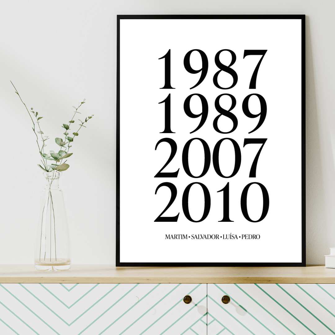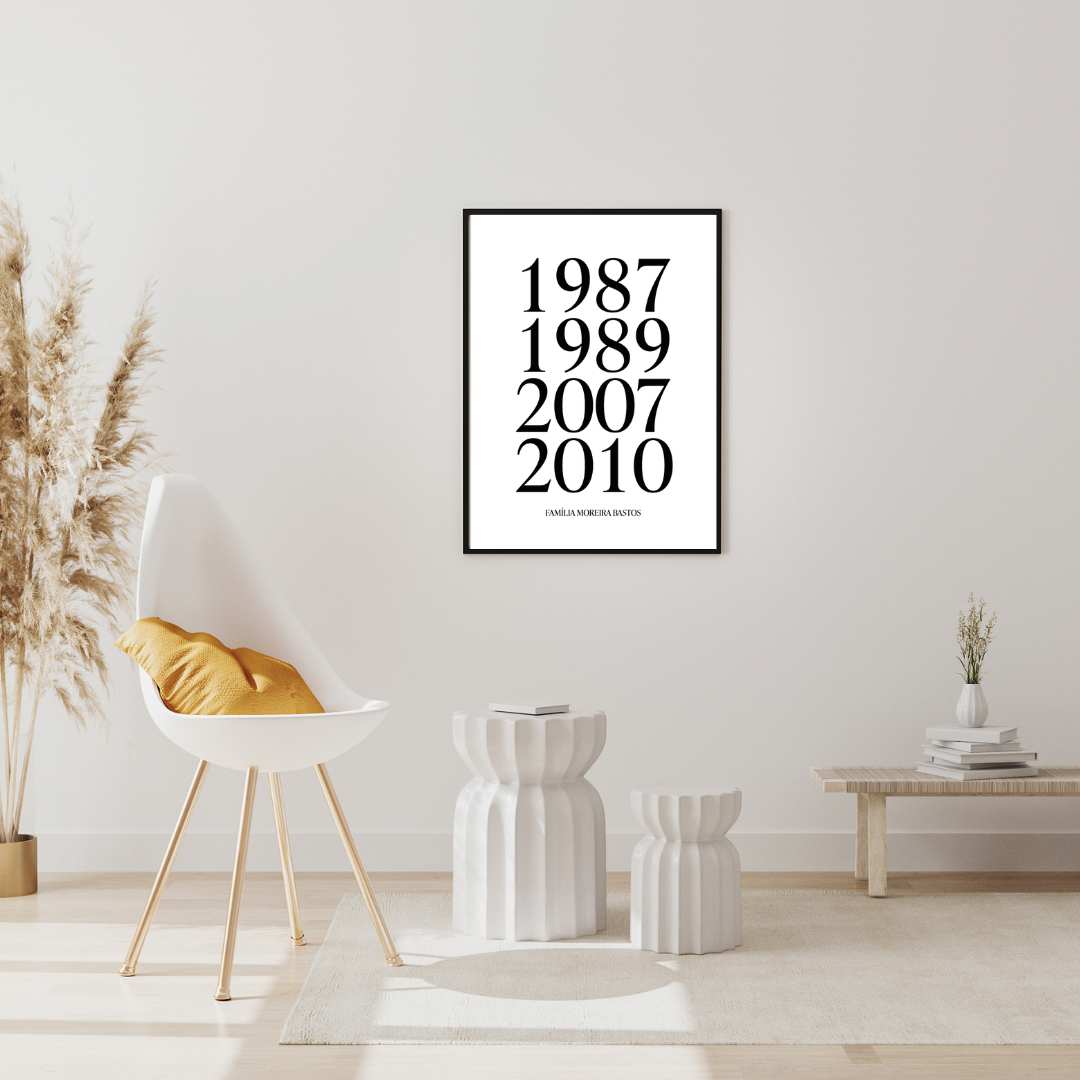 Cada ano marcado neste pôster é uma luz na história da tua família. Estas datas que escolhes trouxeram ao mundos os vossos laços, as vossas histórias e o amor que partilham! Que esses números sejam mais do que uma imagem — que sejam lembranças vivas de quem vocês são enquanto família e de tudo o que ainda vão construir juntos ❤️