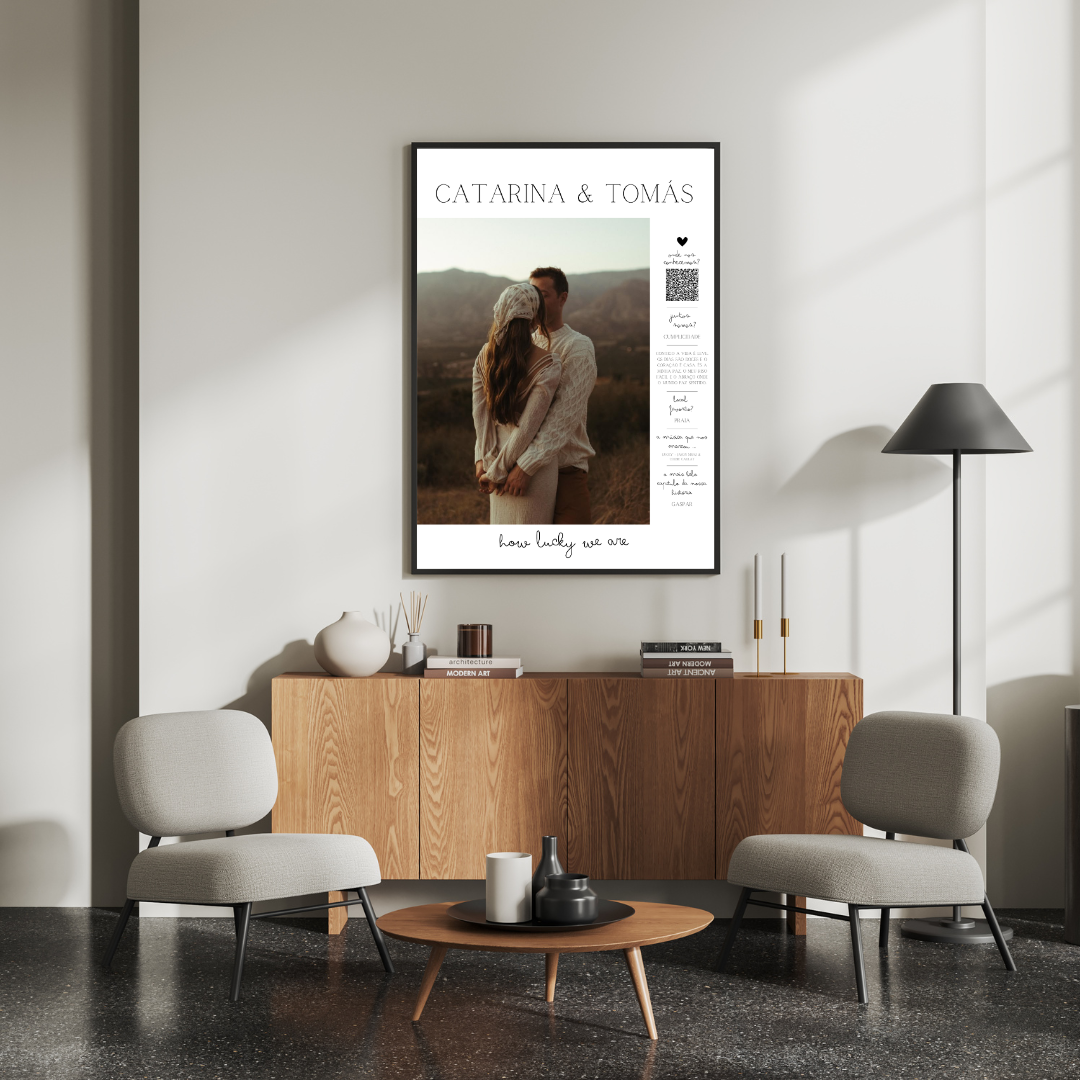 Cada detalhe do vosso amor é único, assim como este pôster que eterniza a vossa jornada juntos.