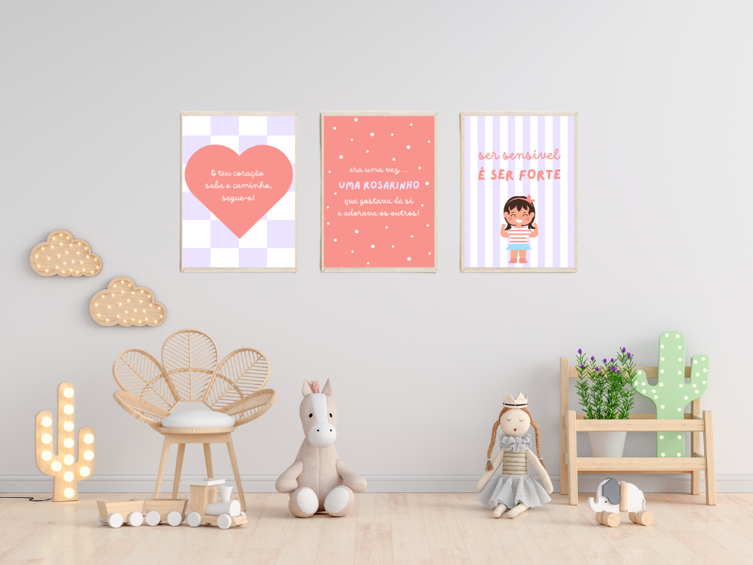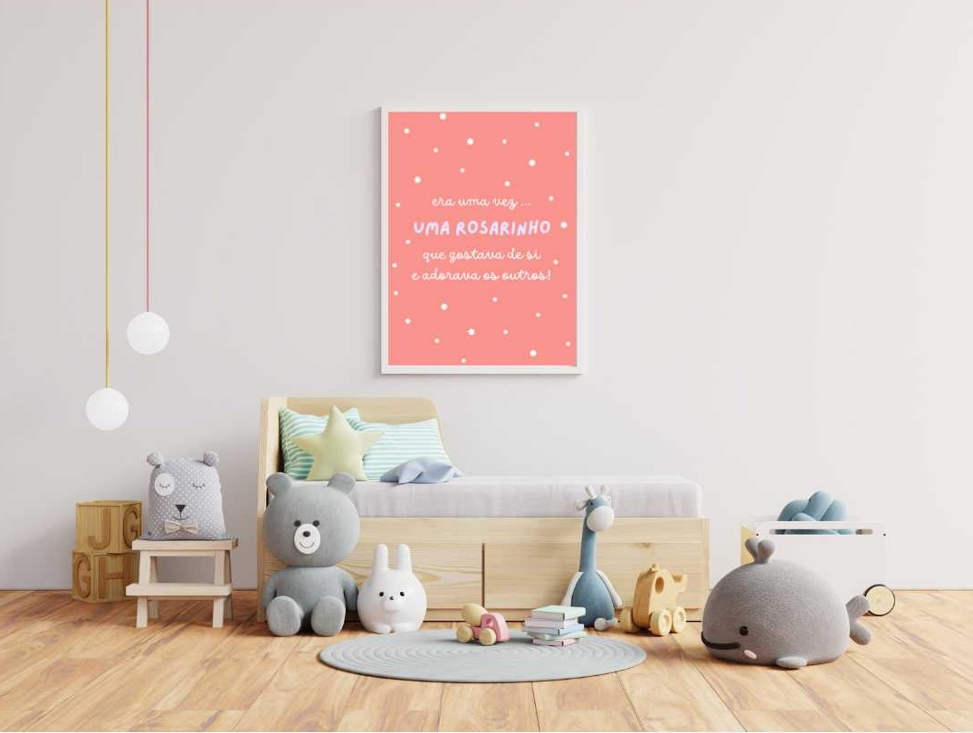 Nos nossos posters infantis, a imaginação dos mais pequenos ganha vida com cores vibrantes e personagens mágicos. Cada peça é criada para ser uma extensão da personalidade única da criança, transformando o seu quarto num lugar especial, cheio de histórias e aventuras. Seja um reino encantado, um céu estrelado ou um mundo de fantasia, os nossos quadros capturam sonhos e refletem o que há de mais puro e especial em cada criança: sua própria essência.