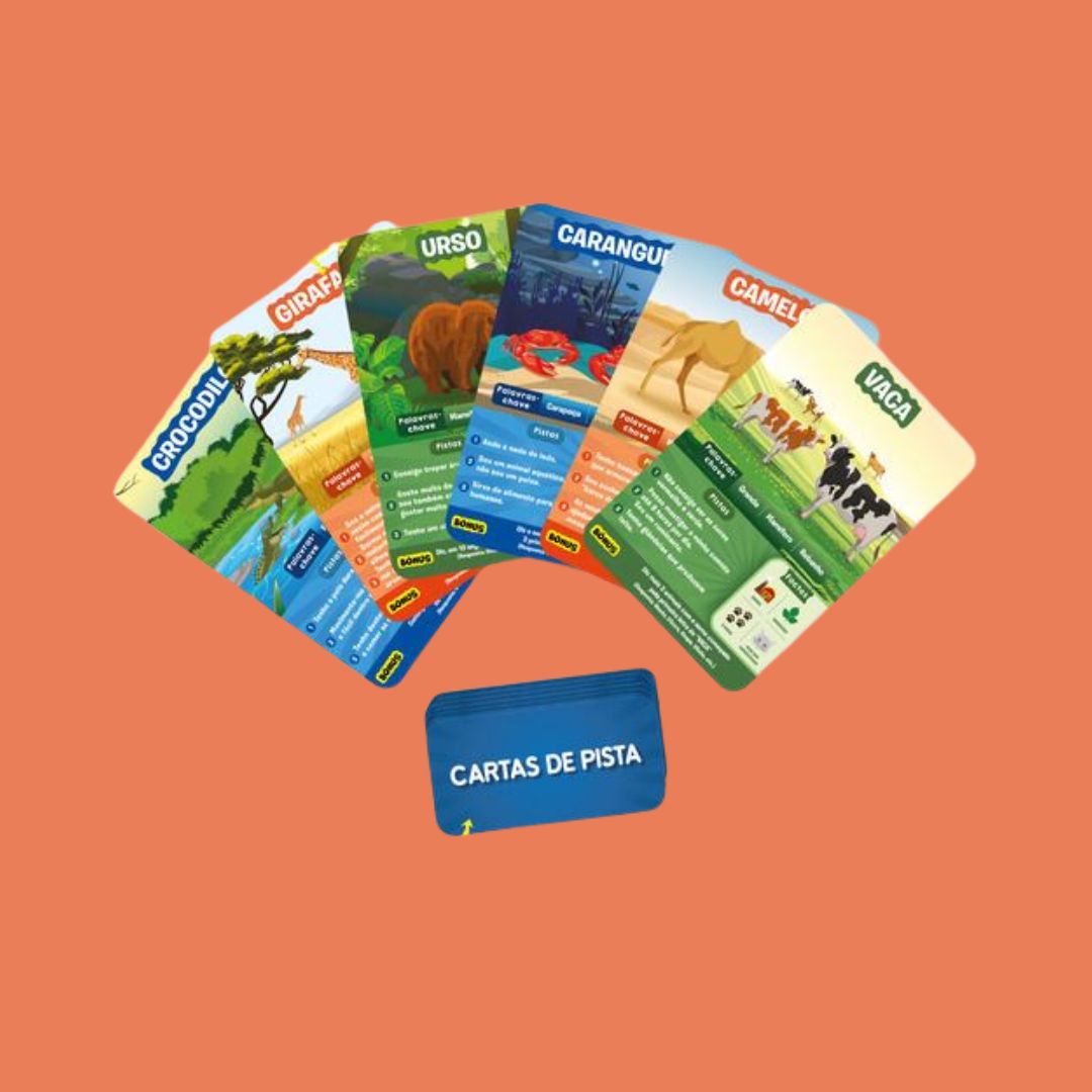 Pensa bem, faz perguntas inteligentes, usa as tuas Cartas de Pista de forma sábia, e sê o primeiro a ganhar 7 Cartas de Jogo!