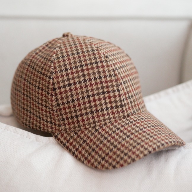 Boné de algodão com padrão de pata de galo em cinza, verde ou vermelho.