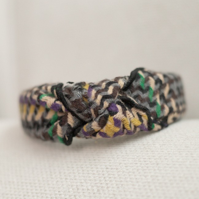 Bandolete efeito turbante em malha de algodão trabalhada e matizada em amarelo, preto ou verde.