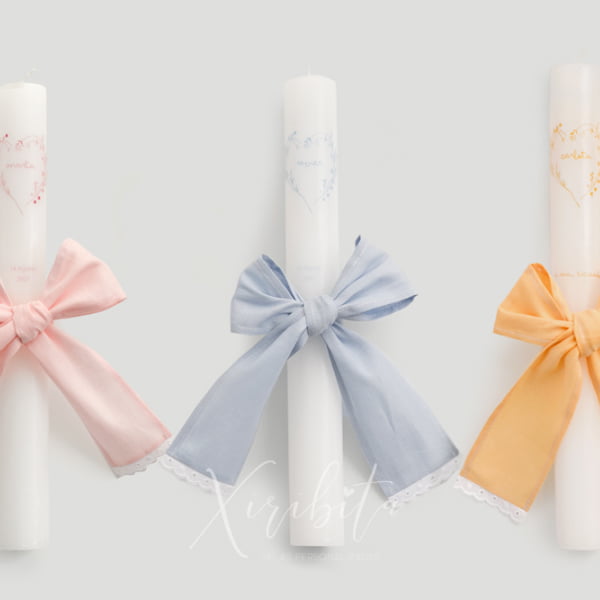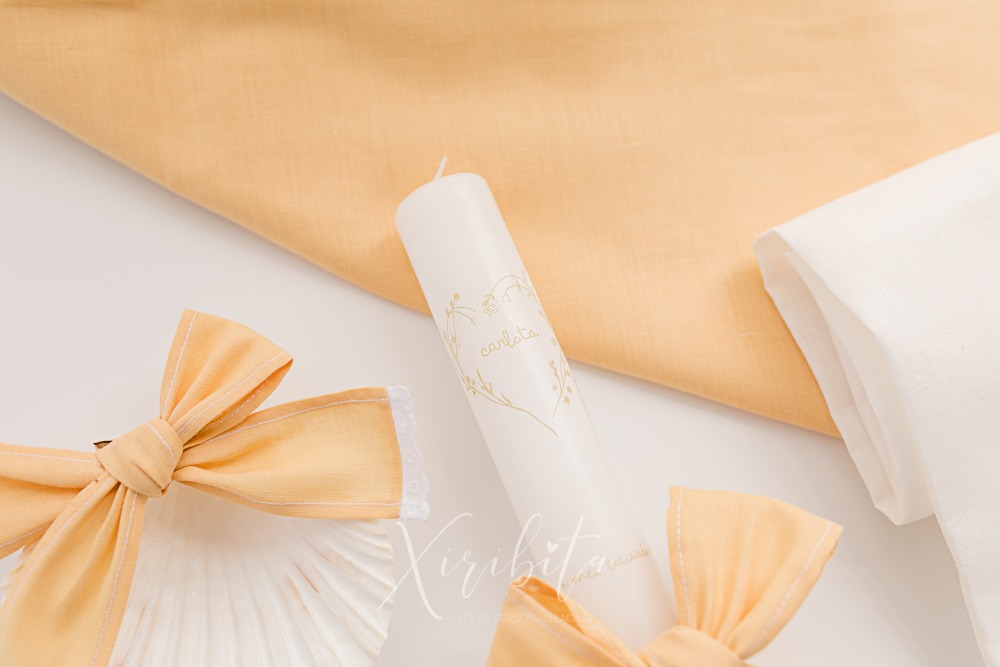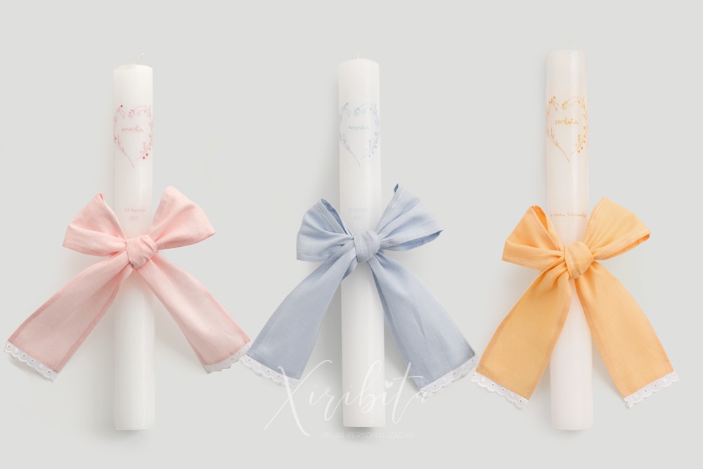 As conchas são personalizadas com laços ou elementos semelhantes aos presentes na decoração da vela escolhida.