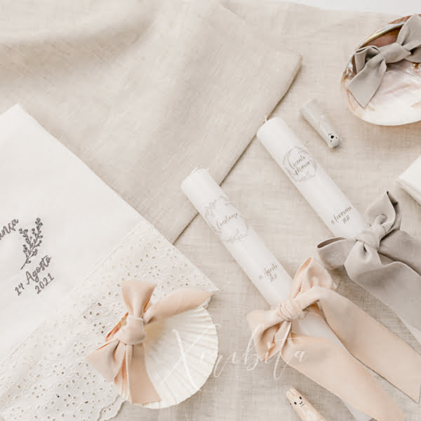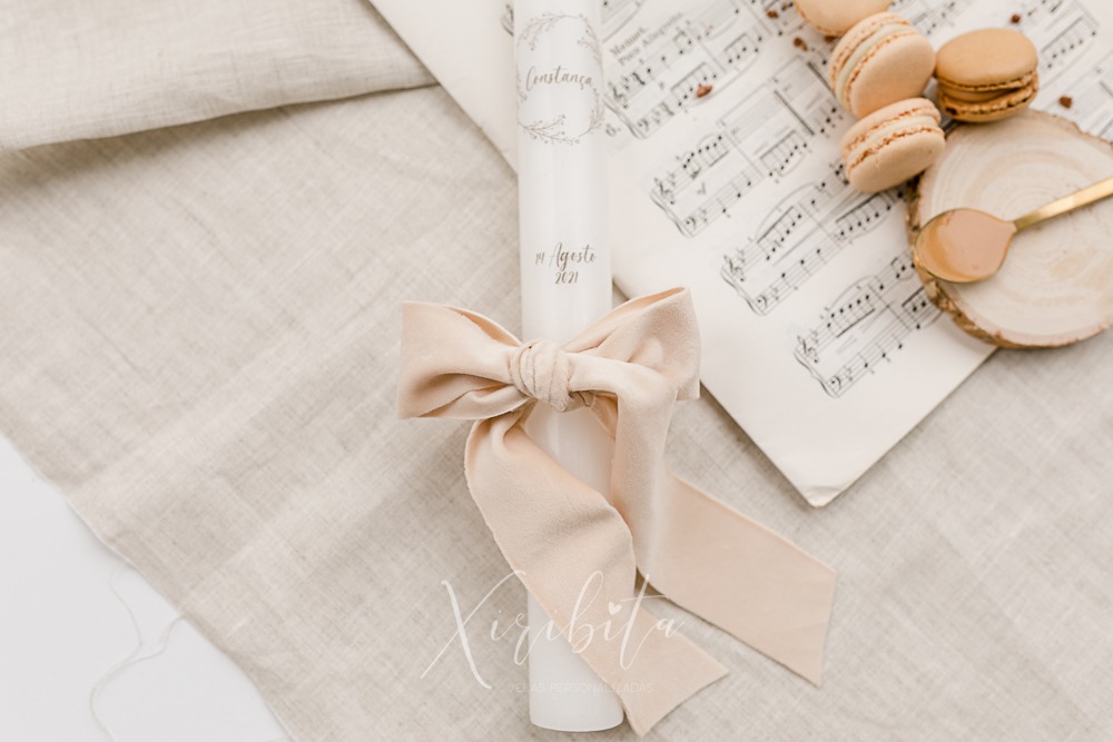 As conchas são personalizadas com laços ou elementos semelhantes aos presentes na decoração da vela escolhida.